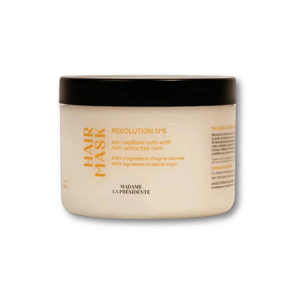 Madame la Présidente Résolution N°6 est un masque capillaire nutri-actif haute performance pour cheveux secs,...