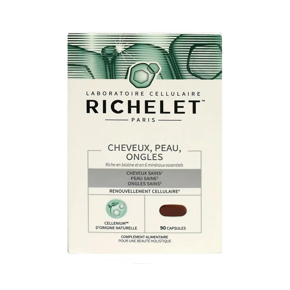 RICHELET Cheveux, Peau, Ongles est un complément alimentaire formulé avec le complexe CELLENIUM™ d'origine naturelle...